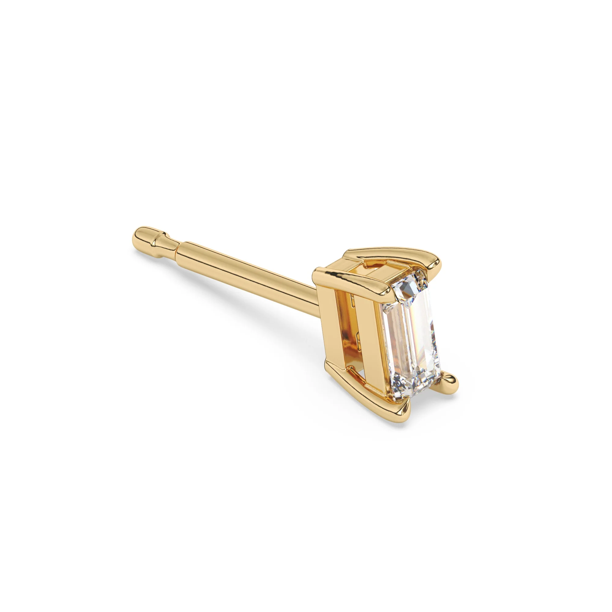 These solid gold Baguette lab diamond stud earrings offer a timeless look with just the right amount of sparkle to bring a hint of glamour to your everyday look
