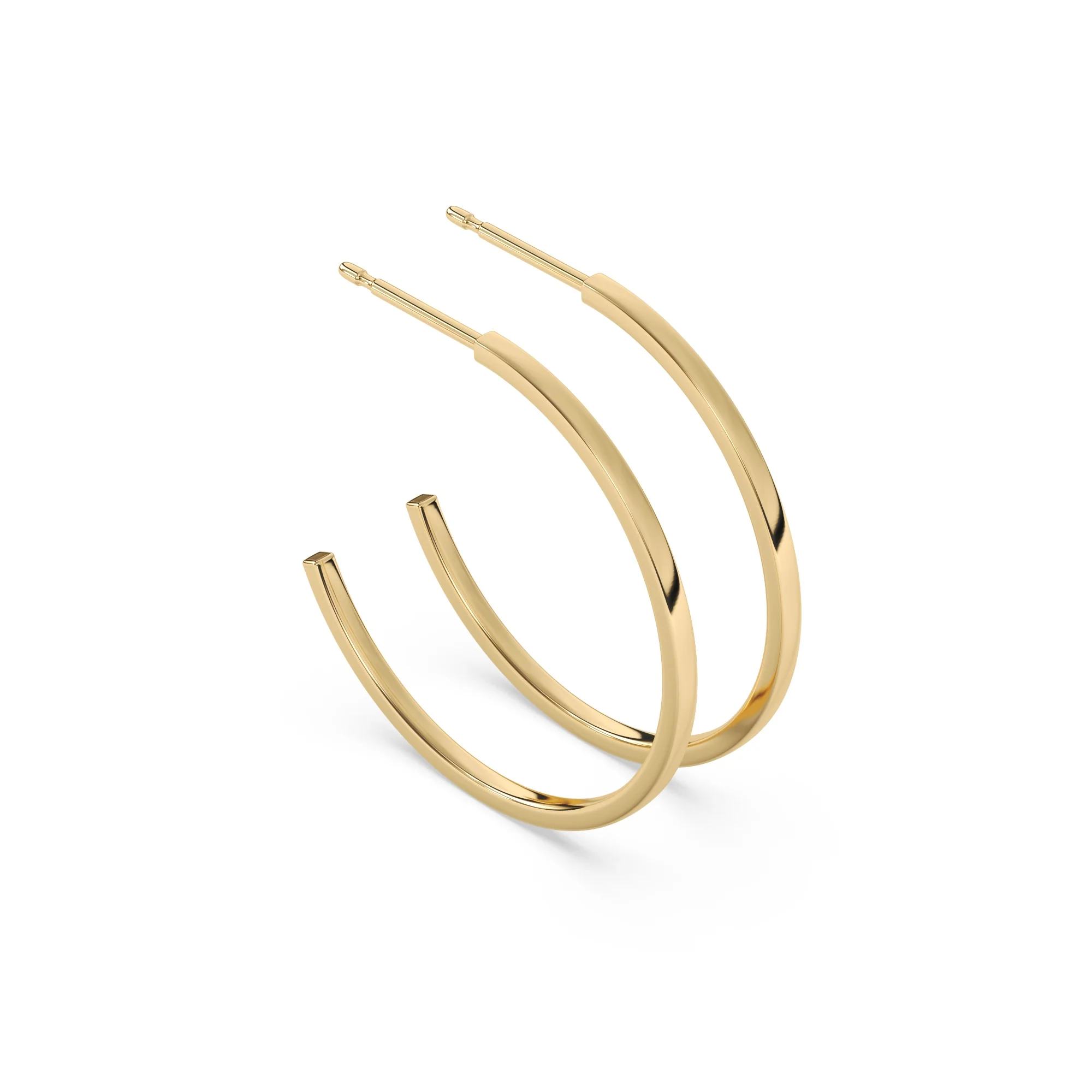 14k solid recycled gold hoops in our signature style. These timeless earrings are an elevation of standard hoops, matching the profile of our signature solitaire rings exactly
