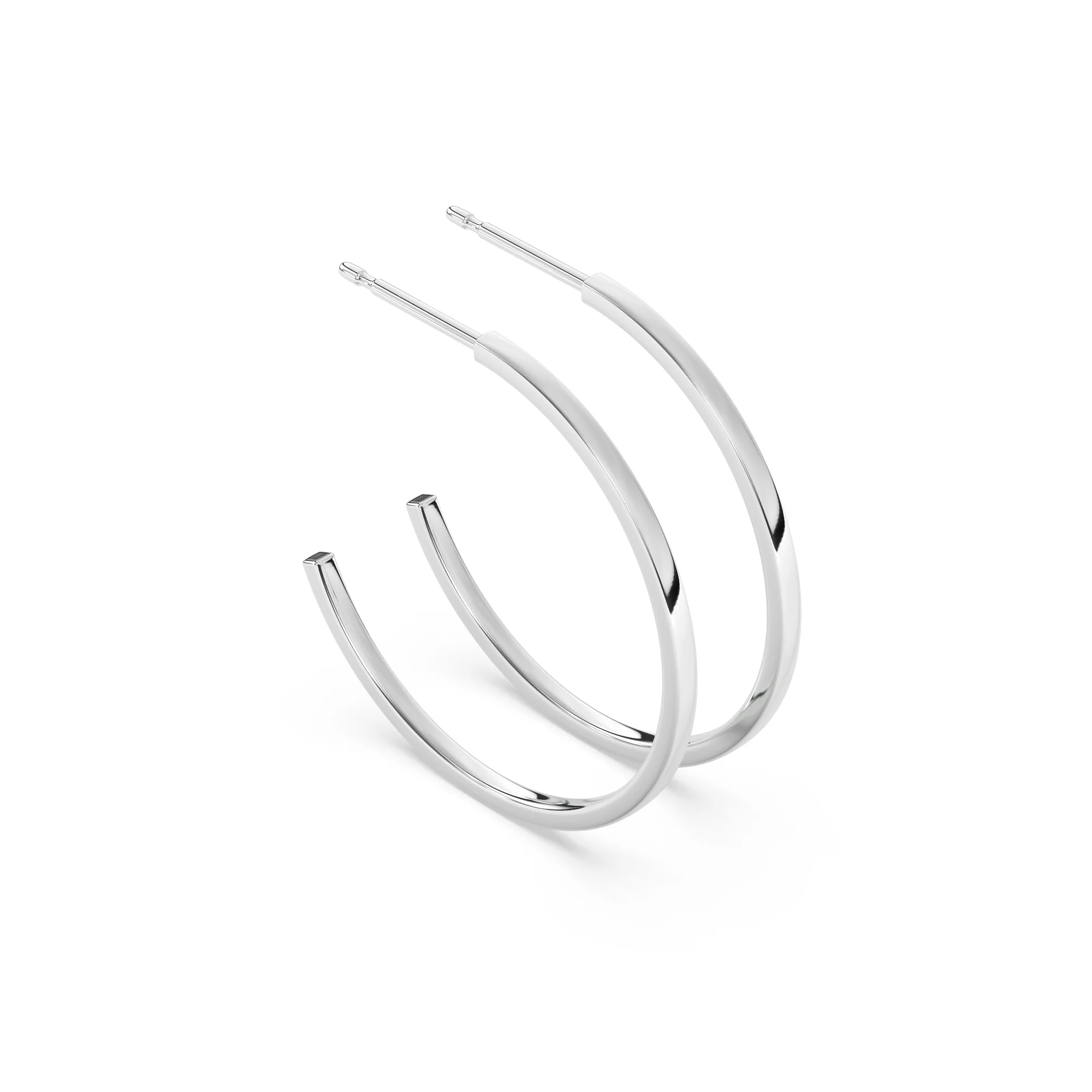 14k solid recycled gold hoops in our signature style. These timeless earrings are an elevation of standard hoops, matching the profile of our signature solitaire rings exactly